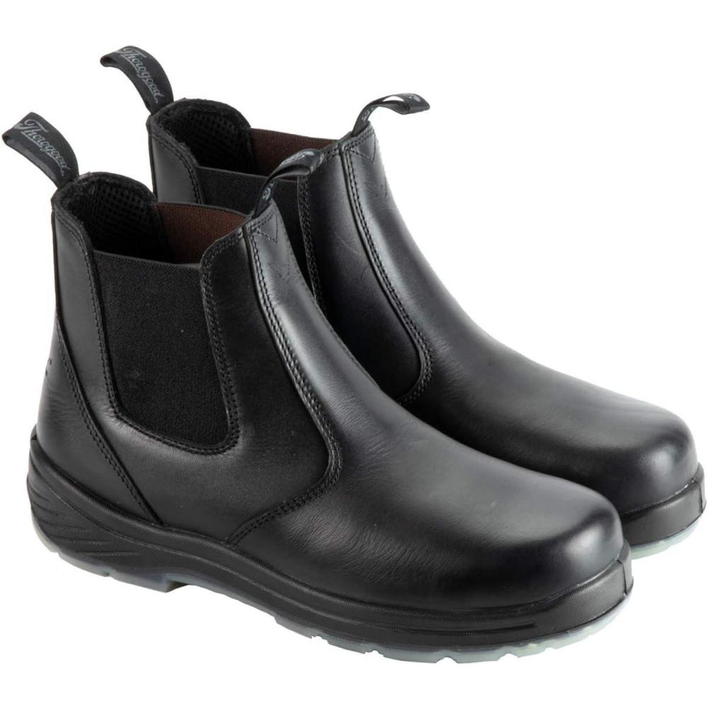 Thorogood 6” Slip On Safety Toe Station Boots for Men and Women – Leather with Quick Release, Slip-Resistant Outsole, and Translucent Non-Marking Bottom; EH Rated(Black)
