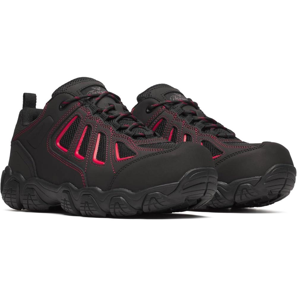 Thorogood Crosstrex Series SD Oxford Work Shoes for Men with a Composite Safety Toe, Black and Red Hiker-Style Work Boots(Black & Red)