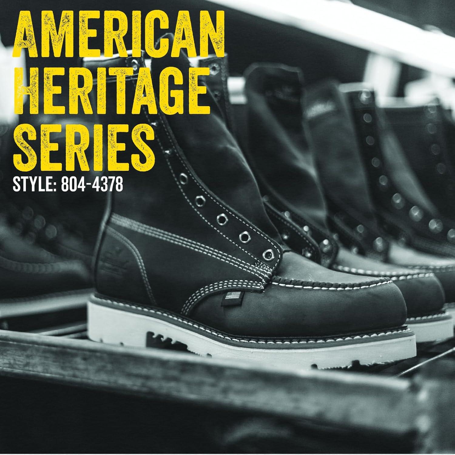 “Since 1892, Thorogood has created a legacy of industry-leading footwear, delivering safety and comfort to their customers. They take the finest-sourced materials to create a tough, comfortable, and supportive boot you can trust. Thorogood is an employee-owned company making job-fitted boots inspired by the hard-working people who get the job done. Whether you’re a firefighter, public safety professional, lineman, carpenter, or anyone else who works for a living, Thorogood’s got your back, on the job and off. You’re no stranger to rugged working conditions, and you need a great pair of steel toe work boots that can stand up to the same tough conditions that you work in. You’ve found the right pair of boots in American Heritage 8-inch moc toe steel toe work boots. These boots are made in the USA by union workers who know what hard work looks like. Made to give you the protection you need on the job, the slip-resistant MAXWear 90 outsoles help keep you on your feet, while the Ultimate Shock Absorption footbed and Poron comfort cushion insole keep you comfortable all day long. And since none of us wants to give up a great pair of work boots once we’ve found them, know that the Goodyear Welt means you can resole these boots over the years, making them a smart long-term buy. Thorogood has relentlessly focused on craftsmanship, innovation, and comfort, while recognizing the importance of footwear to your livelihood and getting the job done. Thorogood work boots are job-fitted for the electrician, carpenter, ironworker, boilermaker, sheetmetal worker, utility lineman, millwright, assembler or fabricator, to name just a few occupations. You perform a specialized job, so you need a specialized boot. To further accommodate your needs, we offer extended sizes, metatarsal guards, and styles ranging from lace-to-toe, side zip, and wellington footwear.”