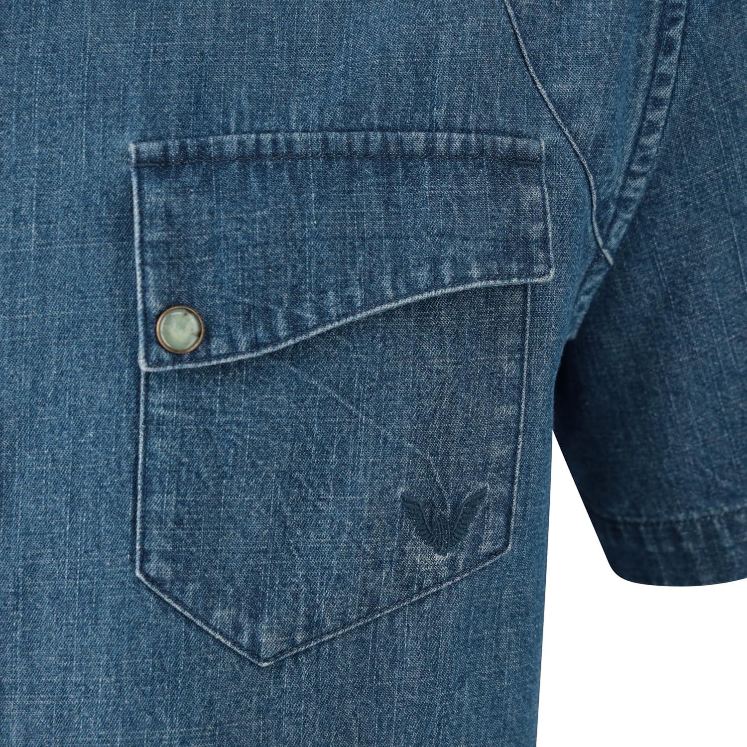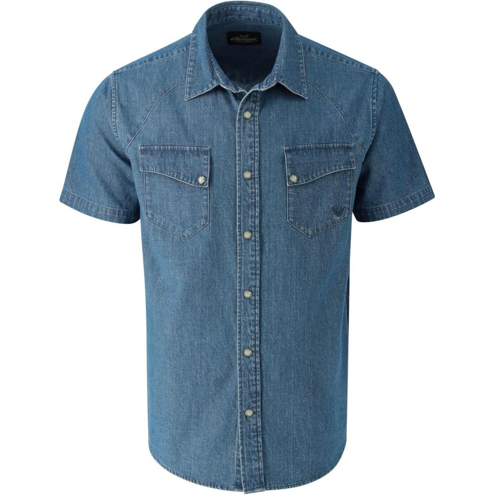Thorogood Men’s Western Short Sleeve Snap Down Shirt(Medium Blue Denim)