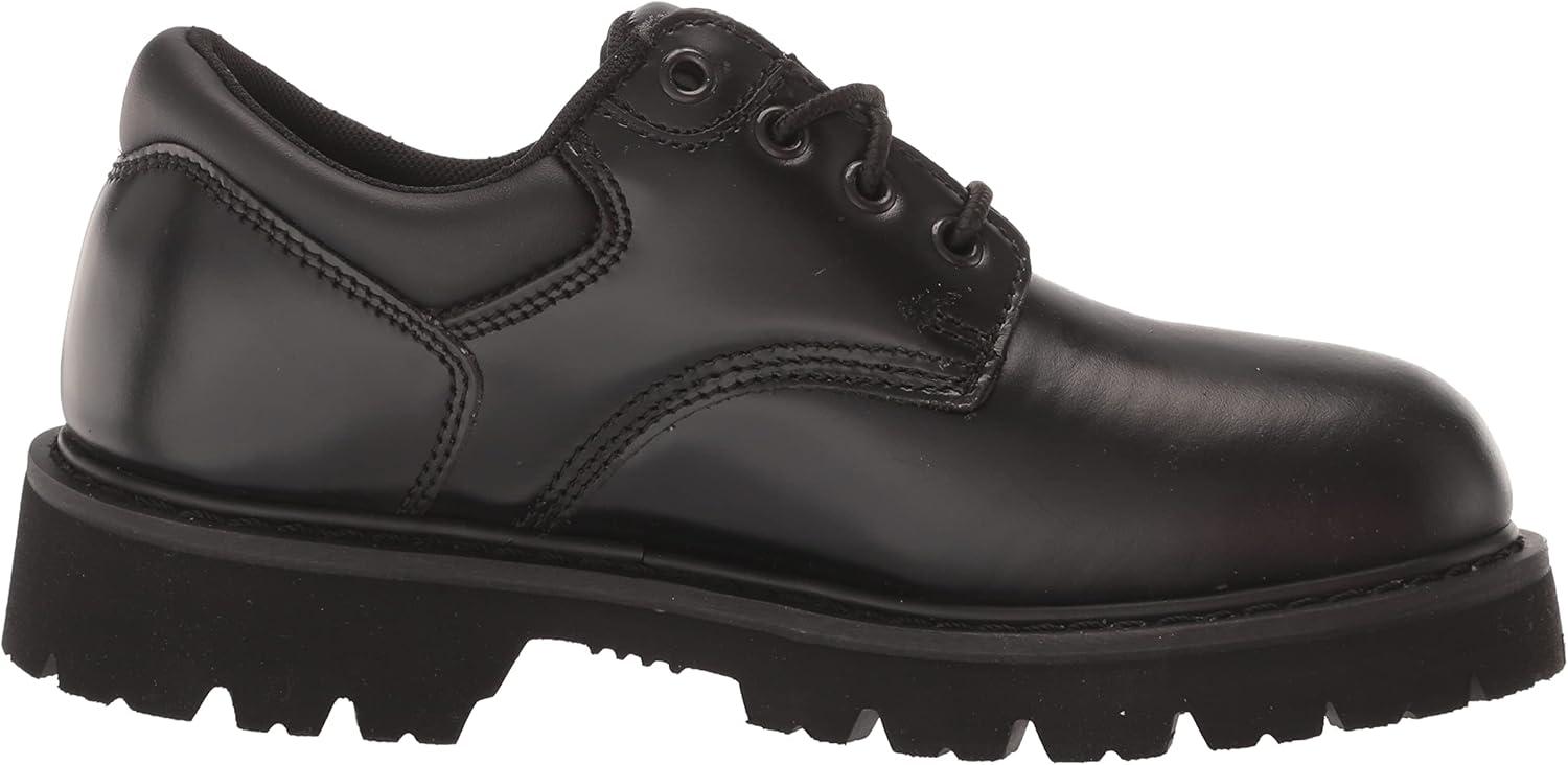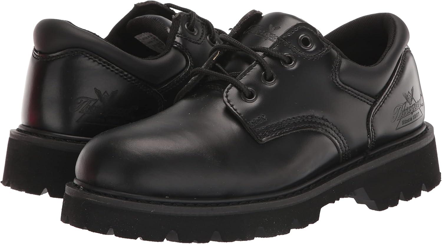 Thorogood Uniform Classics Steel Toe Oxford Work Shoes for Men and Women Featuring Polishable High-Shine Leather, Goodyear Storm Welt, and Non-Slip EVA Lug Outsole(Black)